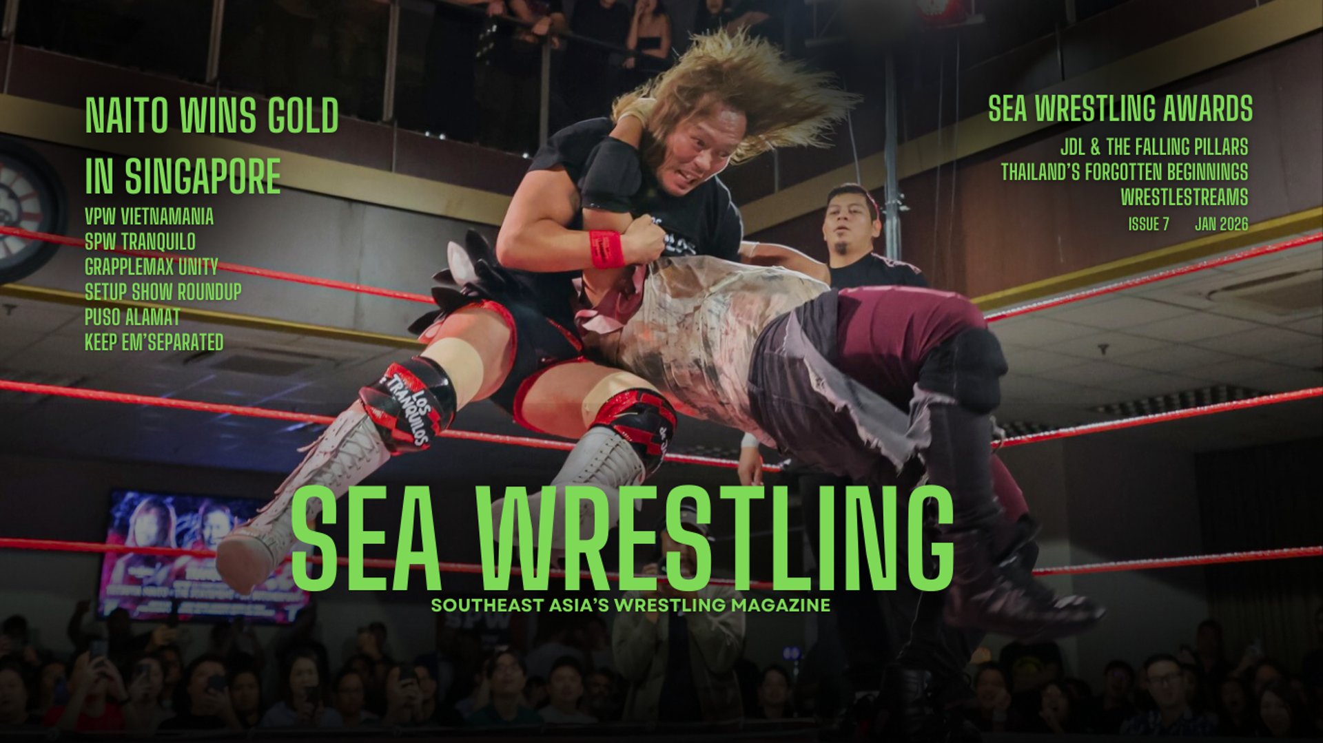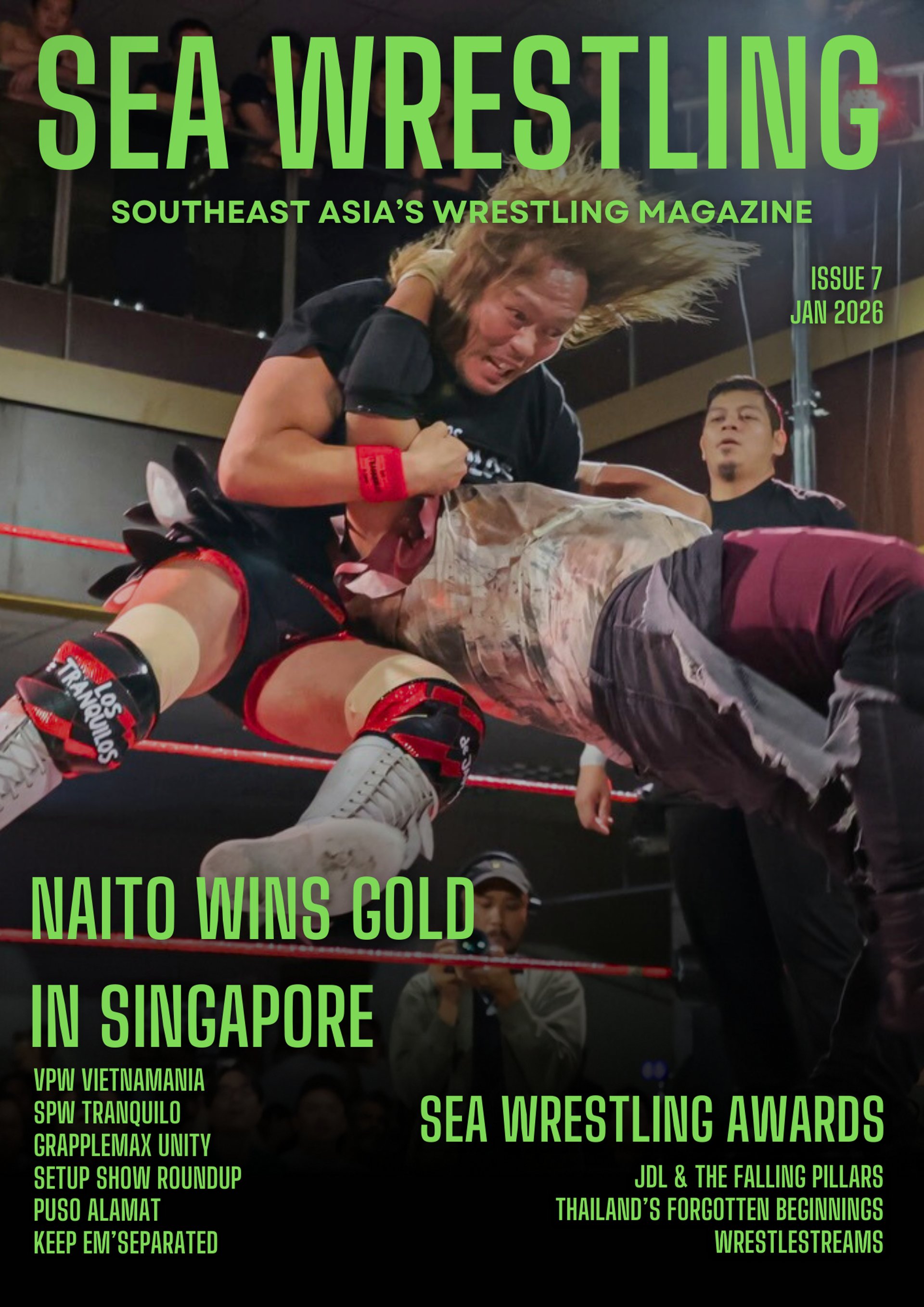 Singapore Pro Wrestling ended the year with Tranquilo, which—thanks to the shock SEA Title win by Tetsuya Naito—gave the promotion a global media boost, including our own press release being used by POST Wrestling. More on the show later in the issue, but it is safe to say it may have been the biggest attendance ever at The Foo Chow Building.