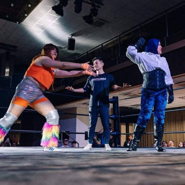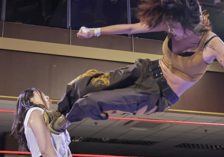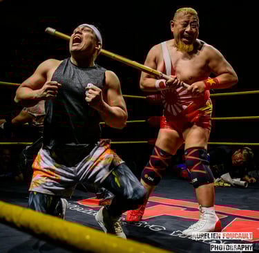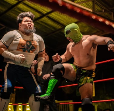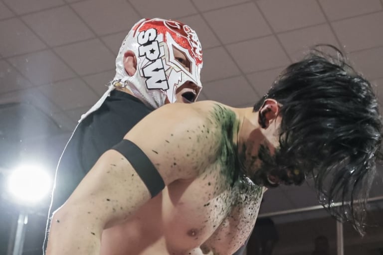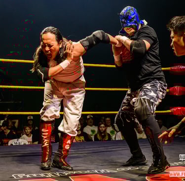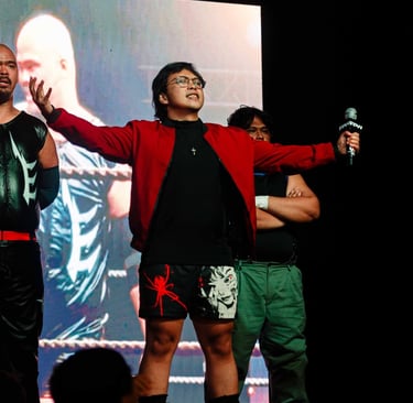 The main event carried immen'se emotional weight. Long-reigning Openweight Champion Hotshot Wilson defended against SPD,a wrestler who has clawed his way back from the bottom since 2022 to earn the unwavering support of fans and peers alike. While Grapplemax’s video packages are consistently strong, this one stood out as exceptional, perfectly framing the stakes. SPD’s entrance, complete with a drum group leading into “The Black Parade,” transformed the Foo Chow Building into a wall of sound, with fans singing and chanting his name. Hotshot’s contrasting entrance, flanked by allies and dripping in gold, drew a chorus of boos.