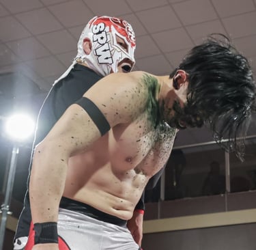 The bell ignited the crowd as both men tested each other. A stunner attempt sent Hotshot retreating into the audience, buying time before reasserting control through technical precision. SPD responded with speed and forearms, but Hotshot repeatedly cut him off, clearly having studied his challenger closely. As the match wore on, frustration mounted among the fans as SPD struggled to break through. A fiery comeback, highlighted by his signature leg drop, nearly turned the tide, but Hotshot weathered the storm.
