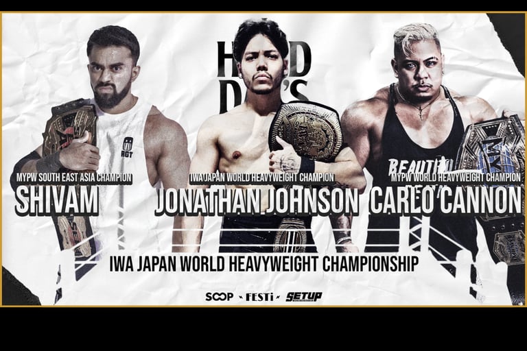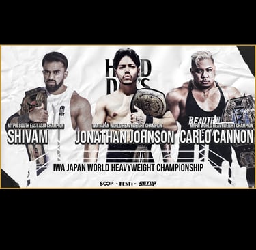 Monomoth’s Openweight Championship triple threat against Dr. Gore and Kouki positioned him as a resilient, almost reluctant babyface, surviving double submissions and outside interference before pinning Kouki with a sudden reversal. Despite limitations the match was entertaining. Matcha’s All Asia Women’s Championship defence against Marika Kobashi was smooth and technically sound, though brief while the IWA World Championship triple threat closed the show in emphatic fashion. Jonathan Johnson, Shivam, and Carlo Cannon brought contrasting styles into a chaotic, physical contest, with Shivam ultimately emerging victorious and declaring himself not the first, but the best, IWA World Champion.