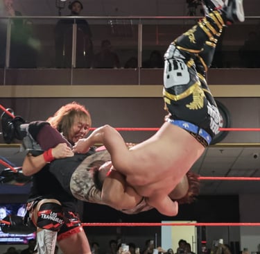 What followed became the defining moment of the entire event. Immediately after the three count, The Rocky Horror Show stormed the ring and cashed in the Sure Shot contract for Rocky. A ferocious beatdown ensued, with Ares barely surviving multiple two counts. The crowd erupted when Hy Draco made his long-awaited return from a leg injury, drawing a thunderous ovation. Clearing British Horror from the ring, he allowed Ares to recover and deliver another Stormbreaker to Rocky to retain the championship. There was no question this was the emotional high point of the night.