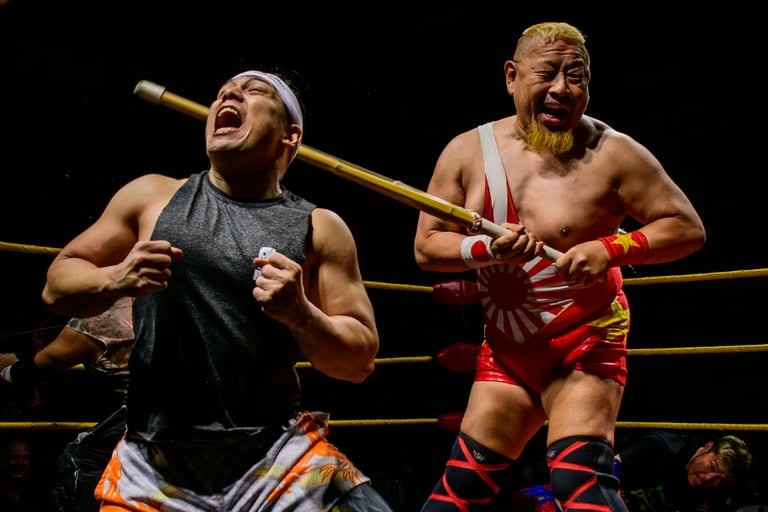 The Bangkok Deathmatch for the All Asia Women’s Championship followed, with Matcha defending against Ram Kaichow and Pom Harajuku. Rather than descending into outright brutality, the match leaned heavily into comedy—Pom’s obsession with Thai food, exaggerated “sleep” spots, pillows, surprise roll-ups, and playful chaos dominated early. When things escalated, trays, powder, and weapons entered the mix, ending with Matcha suplexing Pom to retain. The result was fun and memorable, though those expecting a more traditionally violent deathmatch may have left slightly puzzled.