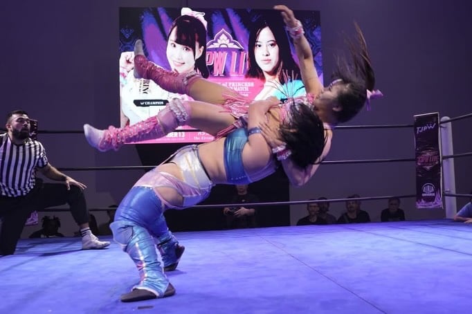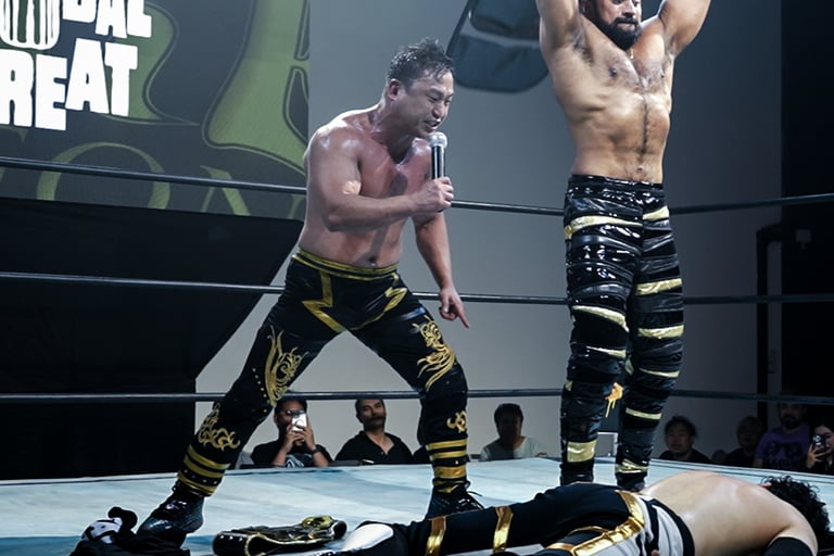 Similarly, the SETUP Tag Team Championship match saw Team TJPW’s Toribam and Miyu Yamashita defeat Real Global Threat’s Jake De Leon and The Statement. While lively, the bout arguably short-changed RGT, who struggled to assert themselves before Toribam’s off-the-ropes moonsault sealed the titles’ unusual status as men’s belts held by a women’s team.