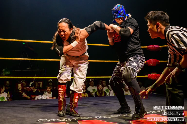 The night opened with a rivalry that began a year ago, as former partners Xiumin Long and Jimmy AG faced each other once more. The former Mystic Warriors made sure the bout felt like the major confrontation it was, delivering true main event-level entrances. Jimmy AG was backed by a group of “brothers” in matching attire, but it was the striking Vortex Rebellion entrance that left the strongest impression. A stunning female singer accompanied the entire stable as they flanked Xiumin on the entranceway, all donning Xiumin-style masks to create a visually imposing moment.